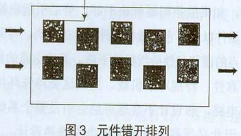 交錯分散排列。在布板設計進行元件布局時,應將發(fā)熱元器件與一般器件及溫度敏感器件區(qū)分開,發(fā)熱器件周圍應留有足夠的散熱氣體流動通道,發(fā)熱元件應錯開分散排列,如圖3所示。這與通常布局時的整齊劃一排列恰好相反,有利于改善散熱效果。[page]