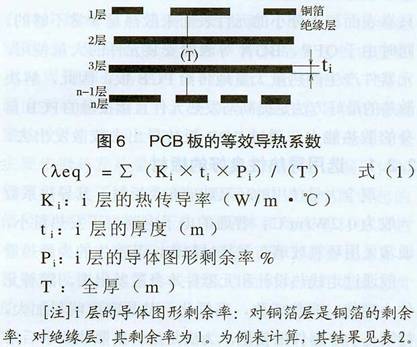 評價PCB的散熱能力,就需要對由導熱系數(shù)不同的各種材料構成的復合材料一一PCB用絕緣基板的等效導熱系數(shù)(九eq)進行計算。PCB板的等效導熱系數(shù)見圖6所示。