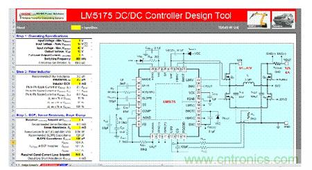 圖3. 步驟1到3分別是指運(yùn)行技術(shù)規(guī)格、電感器篩選和電流感測(cè)。這個(gè)電路原理圖是根據(jù)輸入的以及計(jì)算出來的組件值自動(dòng)組裝而成。