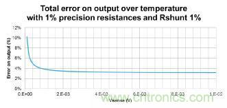 圖3: 總誤差, 假設(shè)電阻精度為0.1% Rshunt精度為 1%