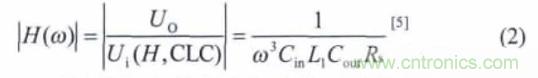 對于開關(guān)電源輸出而言,其交流信號即為電源紋波信號根據(jù)CLC 濾波電路傳遞函數(shù):