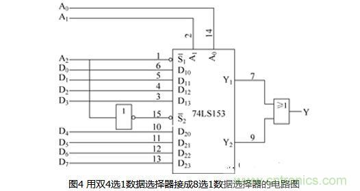 例1:用74LS153設(shè)計(jì)一個(gè)8選1的數(shù)據(jù)選擇器。
