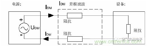 差模干擾是指兩條電源線之間(wire to wire)的,主要通過(guò)選擇合適的電容(X電容,也稱安規(guī)電容),和差模