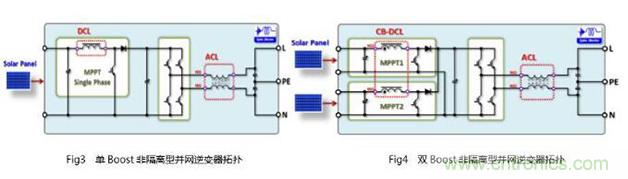 3)對于一些復雜系統(tǒng),特別是像日本市場的產(chǎn)品,為適合其國情,往往在PV逆變器的前端會采用多個MPPT的直流升壓,而后端卻只有單Boost進行MPPT控制。