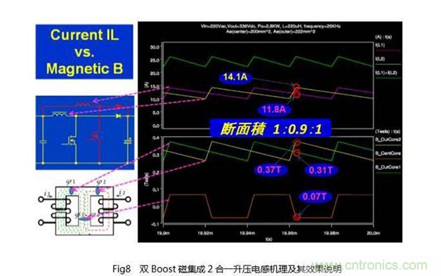 對于功率大的PV逆變器,因其常常采用雙Boost的結(jié)構,為此若進一步引入2合一式的磁集成(Integrated Magnetics)技術,還可以進一步提高效率,降低成本。