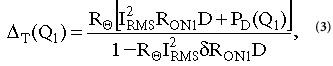 其中δ是R ON的溫度系數(shù),單位為°C -1,P D是動態(tài)損耗項(xiàng),與R ON無關(guān)。