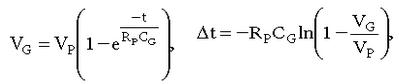 在這些等式中,V G是等效柵極電壓,V P是柵極驅(qū)動脈沖幅度,R P是柵極驅(qū)動輸出阻抗,C G是柵極電容。