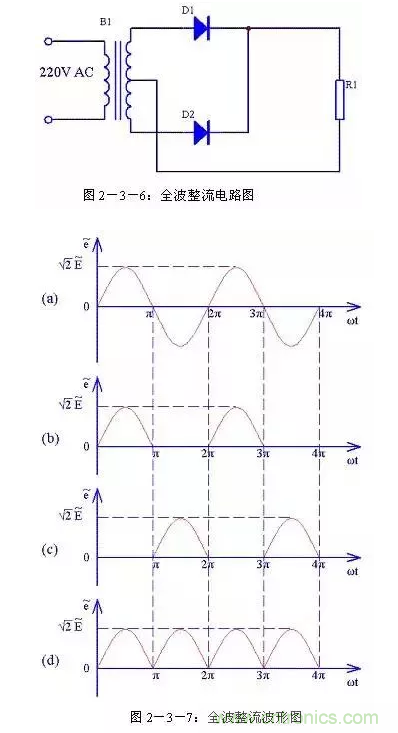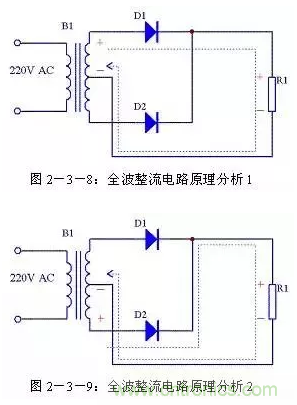 全波整流電路每個(gè)整流二極管上流過(guò)的電流只是負(fù)載電流的一半,比半波整流小一倍。