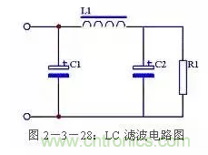 與RC濾波電路相對(duì)的還有一種LC濾波電路,這種濾波電路綜合了電容濾波電路紋波小和電感濾波電路帶負(fù)載能力強(qiáng)的優(yōu)點(diǎn)。其電路圖見(jiàn)圖2-3-28。