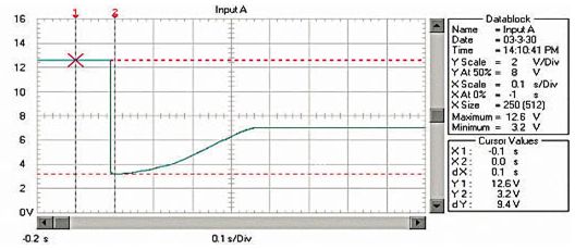 圖1  啟動過程的蓄電池電壓波形