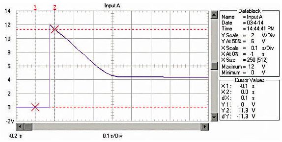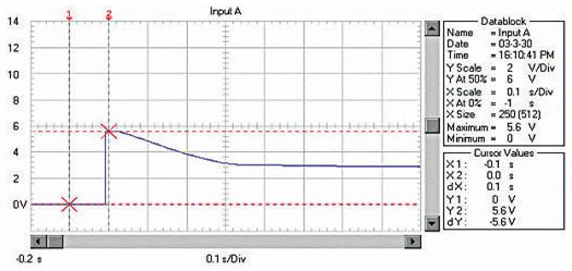 由于RM、RB、RL均非常低,啟動電流非 常大。例如用12V、45Ah的蓄電池啟動安裝1.9升柴油機的汽車,蓄電池的電壓在啟動瞬間由12.6V降到約3.6V!啟動過程的蓄電池電壓波形如圖 1;啟動瞬時的電流達550A,約為蓄電池的12C的放電率!啟動過程的蓄電池電流波形如圖2,(電流傳感器的電流/電壓變換比率:100A/V)。盡管 車用蓄電池是啟動專用蓄電池,可以高倍率放電,但在圖1中可以看出,10倍以上的高倍率放電時的蓄電池性能變得很差,而且,如此高倍率放電對蓄電池的損傷 也是非常明顯的。啟動過程的電壓劇烈變化也是極強的電磁干擾,可以造成電氣設(shè)備的“掉電”,迫使電氣設(shè)備在發(fā)電機啟動過程結(jié)束后重新上電,計算機在這個過程中非常容易死機。因此,無論從改善汽車電氣設(shè)備的電磁環(huán)境還是改善汽車的啟動性能和蓄電池的性能、延長使用壽命來考慮,改善汽車電源在啟動過程的性能是必要的。
