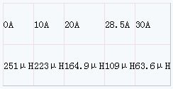 一般電感都是采用開(kāi)氣隙方法提高恒磁范圍,恒磁范圍越大,其氣隙也越長(zhǎng),相應(yīng)的導(dǎo)磁率也越低,要達(dá)到一定的電感量,必須增大鐵心的截面積和體積,下面是一個(gè)開(kāi)氣隙電感的直流特性試驗(yàn),鐵心為非晶態(tài),尺寸為25/45×20,氣隙為2mm,線圈34匝,測(cè)試數(shù)據(jù)如下:
