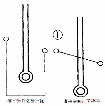通常低電平、高阻抗端導(dǎo)線容易受干擾,布線時(shí)應(yīng)越短越好:輸入、輸出端用的導(dǎo)線應(yīng)盡量避免相鄰平行,最好加線間地線,以免發(fā)生反饋耦合。平行線效應(yīng)與長(zhǎng)度成正比,按信號(hào)去向順序布線,忌迂回穿插。遠(yuǎn)離干擾源,盡量遠(yuǎn)離電源線,高電平導(dǎo)線:實(shí)在躲不開干擾源時(shí),不能與之平行走線,雙面板交又通過,單面板飛線過渡。如圖1所示。