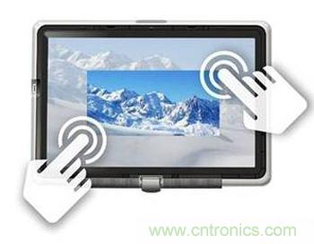 觸摸屏的功能發(fā)展由簡(jiǎn)及繁,最初的產(chǎn)品只支持最簡(jiǎn)單的操[LU4]控,就是一個(gè)手指觸摸屏幕上的一點(diǎn)來實(shí)現(xiàn)操控。比如我們每天在附件超市的POS終端機(jī),或者在機(jī)場(chǎng)的check-in終端上進(jìn)行的操作。以前,我們只能通過屏幕周邊的機(jī)械按鈕進(jìn)行操控,單點(diǎn)觸摸屏在此基礎(chǔ)上實(shí)現(xiàn)了用戶界面方面的一大進(jìn)步。當(dāng)然,機(jī)械和新型電容式觸摸感應(yīng)按鈕在我們的家庭、辦公室及其他地方無所不在:手機(jī)、固定電話、遙控器、電視、電腦及其各種外設(shè)、游戲機(jī)、電冰箱、微波爐、烤箱,以及無線電和空調(diào)等車內(nèi)電子控制設(shè)備等等?,F(xiàn)在,如下列圖1所示的單點(diǎn)觸摸屏在顯示屏上直接集成了用戶控制界面,因此再也不需要傳統(tǒng)的機(jī)械按鈕了。