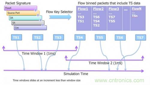 硬件仿真的標(biāo)志之一是,它能對(duì)大型復(fù)雜系統(tǒng)進(jìn)行復(fù)雜性能分析。某些情況下,可能需要數(shù)百萬個(gè)數(shù)據(jù)包才能切中當(dāng)前設(shè)計(jì)中穩(wěn)態(tài)分析的要點(diǎn)。以測量百萬兆以太網(wǎng)交換機(jī)的流量比特率為例。可以采用虛擬以太網(wǎng)簽名生成和數(shù)據(jù)包時(shí)間戳 (TS) 來計(jì)算這些測量。