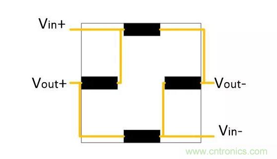 從原理上講,SOI高溫壓力傳感器主要利用的是單晶硅的壓阻效應(yīng)。當(dāng)力作用于硅晶體上,晶體的晶格發(fā)生形變,進(jìn)而導(dǎo)致載流子的遷移率發(fā)生變化,使得硅晶體的電阻率發(fā)生變化。通過在SOI頂層器件層的特定方向刻蝕出4個壓敏電阻,構(gòu)成惠斯通電橋如圖2(a)所示;在SOI的襯底層刻蝕出壓力背腔,進(jìn)而形成壓力敏感結(jié)構(gòu),如圖2(b)所示。