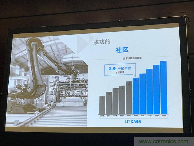 在汽車領(lǐng)域,藍(lán)牙將成為大部分新車的標(biāo)配。2018年,所有新車中高達(dá)86%的新車將具備藍(lán)牙連接功能,藍(lán)牙無線傳感器系統(tǒng)能夠?qū)蓽y的信息和警報傳輸?shù)椒?wù)管理解決方案,從而簡化商業(yè)車隊及消費車輛的維護(hù)。預(yù)計到2022年,車用設(shè)備出貨量將增長4.5倍,與智能手機(jī)融為一體的職能車鑰匙將通過藍(lán)牙連接實現(xiàn)自動鎖定和解鎖檢測,自定義座椅設(shè)定,分享虛擬鑰匙的便利功能。