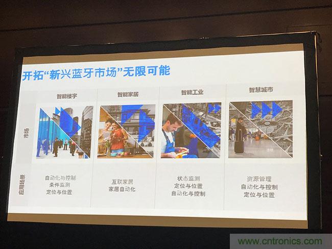 藍(lán)牙技術(shù)聯(lián)盟(Bluetooth SIG)目前已經(jīng)擁有34000會員,其中6000家中國會員企業(yè),SIG總監(jiān)Chuck Sabin回顧了藍(lán)牙20年來的發(fā)展歷程和取得的成績,以及藍(lán)牙市場的發(fā)展趨勢特別是新興市場的發(fā)展前景。智能樓宇,智能家居,智慧城市和汽車是熱門應(yīng)用領(lǐng)域,Sabin指出。
