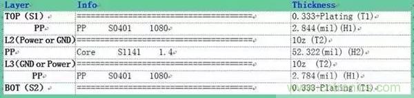 下圖為四層板的參考疊層,其中中間兩層為參考層,參考層通常為GND或Power,并且差分線所對(duì)應(yīng)的參考層必須完整,不能被分割,否則會(huì)導(dǎo)致差分線阻抗不連續(xù)。若是以圖 2疊層設(shè)計(jì)四層板,通常設(shè)計(jì)時(shí)差分線采用4.5mil的線寬及5.5mil的線間距既可以滿足差分阻抗90Ω。
