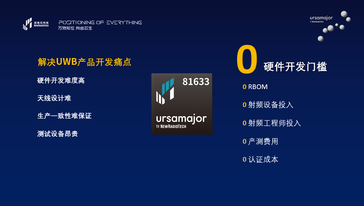 作為一家專注于無線通信技術(shù)芯片領(lǐng)域的先驅(qū)企業(yè),紐瑞芯始終致力于提供最優(yōu)質(zhì)、最高效的產(chǎn)品和解決方案。紐瑞芯在與合作伙伴密切合作的過程中,發(fā)現(xiàn)市場(chǎng)對(duì)UWB技術(shù)性能提升越來越急迫,且其應(yīng)用的范圍正在不斷延伸,場(chǎng)景越發(fā)豐富。這次發(fā)布的NRT ursamajor 2.0,是紐瑞芯深度挖掘了這些需求痛點(diǎn),對(duì)現(xiàn)有UWB技術(shù)產(chǎn)品進(jìn)行優(yōu)化和升級(jí)后的成果,旨在提供更加精確、穩(wěn)定、安全的定位通信服務(wù)?!猆nleash the power of UWB!