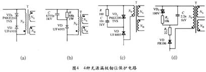 漏極鉗位保護電路主要有以下4種設(shè)計方案(電路參見圖4):