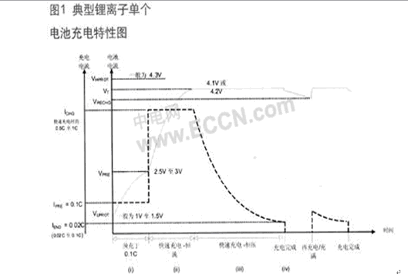 鋰離子電池充電周期為模擬充電電路中的主要功率損耗,以便選擇正確的元件,我們必須了解鋰離子(Li-Ion)電池的充電周期。圖1顯示了單個鋰離子電池的典型充電周期。預(yù)充電壓閾值(VPRE)、上端電池電極電壓閾值(VT)、以及再充電閾值(VRECHG),取決于鋰離子電池的種類及不同的生產(chǎn)商。而預(yù)充與上端電壓極限的電壓差取決于電池的內(nèi)部化學(xué)性質(zhì)。