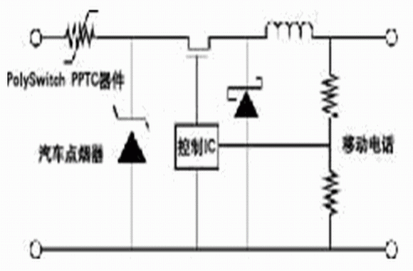 (2)轉(zhuǎn)換器出現(xiàn)故障。如果轉(zhuǎn)換器或起控制作用的集成電路出現(xiàn)故障,造成短路,這時(shí)PPTC保護(hù)器件進(jìn)入高阻抗?fàn)顟B(tài),保護(hù)汽車(chē)線路及熔斷絲。