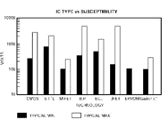 例如,典型情況下,一個(gè)人所帶電荷可以表征為一個(gè)150pF的電容器與330Ω的電阻器串聯(lián)。推算其靜電電壓有可能在8~15kV范圍內(nèi),甚至高達(dá)25kV。當(dāng)人接近系統(tǒng)時(shí),靜電場(chǎng)(ESD)和不均勻電壓分布會(huì)導(dǎo)致系統(tǒng)內(nèi)元件被損壞。一般來(lái)說(shuō),ESD很容易損壞未受保護(hù)的IC。據(jù)統(tǒng)計(jì),各類IC的ESD擊穿電壓分布如圖1所示。
