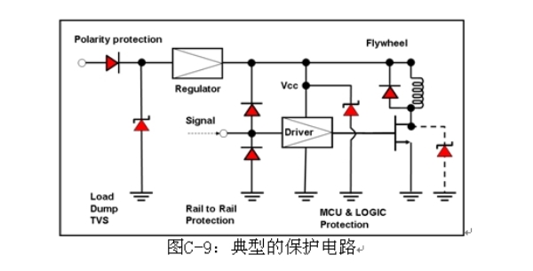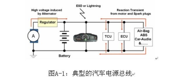 汽車電子,如電子控制單元、傳感器和娛樂系統(tǒng),都是連接在一根電力線上。這些電子產(chǎn)品的功率來源是電池和發(fā)電機,兩者的輸出電壓都不穩(wěn)定,會受到溫度、操作狀態(tài)和其他條件的影響。此外,由于這些系統(tǒng)使用了螺線管負(fù)載,如燃料噴射、氣門、發(fā)動機、電氣和水解控制器,ESD、尖峰噪聲和各種瞬變及浪涌電壓都會進入電源及汽車系統(tǒng)的信號線。