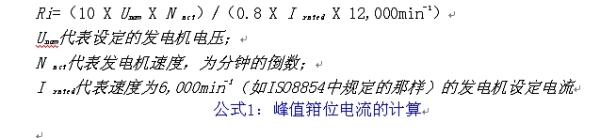 負(fù)載突降狀態(tài)的額定功率是由內(nèi)阻表示的,由該公式得到了一個發(fā)電機的內(nèi)阻,如公式A-1所示。