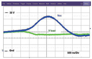 圖2展示NIS5132的一對曲線。導通較低的曲線時,激活的是短路曲線。一旦電流降低至低于這個電平,F(xiàn)ET就完全導通(線性區(qū)域),接下來面對的就是過載電平。如果電流達到過載電平,F(xiàn)ET的柵驅(qū)動將立即減小,而漏極至源極電壓將增加,并會將工作模式改為短路電平模式。這器件在過載電平時不能維持穩(wěn)態(tài)工作。