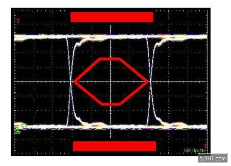 通過在示波器的垂直軸對(duì)數(shù)字信號(hào)進(jìn)行反復(fù)采樣、同時(shí)采用相應(yīng)數(shù)據(jù)率對(duì)水平時(shí)間掃描進(jìn)行觸發(fā)來生成眼圖。所獲得的圖形看上去象眼睛,如圖1所示。“眼睛”越大,數(shù)據(jù)完整性越高。通常采用模板(mask)來對(duì)可接受的信號(hào)質(zhì)量進(jìn)行定義。這模板由“眼睛”中間的六角形和“眼睛”上、下的矩陣組成。如果測(cè)得的信號(hào)跡線穿越模板的邊線,那么信號(hào)質(zhì)量就不可接受。USB2.0信號(hào)模板規(guī)范由USB應(yīng)用者論壇(USBIF,www.usb.org)提供,可參見USB2.0版規(guī)范第7.1.2.2章節(jié)。圖1中顯示了帶有詳細(xì)臨界點(diǎn)的眼圖。