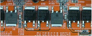 一般主板燒壞,維修人員最先檢查的都是Mosfet。質(zhì)量不好的Mosfet在長時間使用的時候,會非常燙手,甚至有燒毀的可能。所以,選購主板,觀察Mosfet這個環(huán)節(jié)上,最好考慮Philips,Infineon,IR的品牌,其次考慮Alpha,ST,ON這些品牌。如下圖所示: