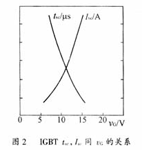 IGBT的短路電流和柵壓有密切關(guān)系,柵壓越高,短路時(shí)電流就越大。在短路或瞬態(tài)過流情況下若能在瞬間將vGS分步減少或斜坡減少,這樣短路電流便會(huì)減小下來,當(dāng)IGBT關(guān)斷時(shí),di/dt也減小。集成驅(qū)動(dòng)電路如EXB841或M579xx系列都有檢測vCES電路,當(dāng)發(fā)現(xiàn)欠飽和時(shí),柵壓箝位到10V左右,增大vCES,限制過電流幅值,延長允許過流時(shí)間。短路允許時(shí)間tsc和短路電流Isc同柵極電壓vG的關(guān)系如圖2所示。