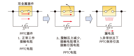 1.在正常狀態(tài)下,由于雙金屬片的電阻低,大部分電流通過雙金屬片流過。