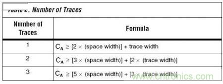 可以經(jīng)過這個區(qū)域布線的走線數(shù)量用表2進行計算。