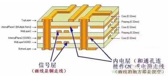 通常簡(jiǎn)稱為內(nèi)電層,僅在多層板中出現(xiàn),PCB板層數(shù)一般是指信號(hào)層和內(nèi)電層相加的總和數(shù)。與信號(hào)層相同,內(nèi)電層與內(nèi)電層之間、內(nèi)電層與信號(hào)層之間可通過通孔、盲孔和埋孔實(shí)現(xiàn)互相連接。