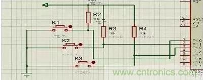 按鍵處理設(shè)置為:當(dāng)有沒鍵按下時(shí),時(shí)鐘正常運(yùn)行;當(dāng)按一次K1,時(shí)鐘停止走動(dòng),按K2對(duì)秒進(jìn)行調(diào)整;當(dāng)K1按2次時(shí),按K2對(duì)分進(jìn)行調(diào)整;當(dāng)K1按下3次時(shí),按K2對(duì)小時(shí)進(jìn)行調(diào)整,當(dāng)按下4次K1時(shí),校時(shí)完畢,時(shí)鐘按設(shè)定的時(shí)間進(jìn)行正常走時(shí)。