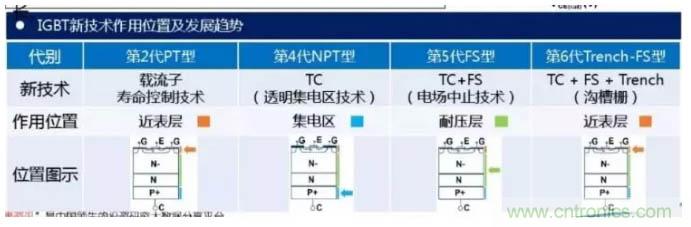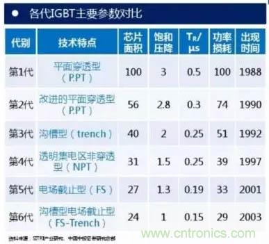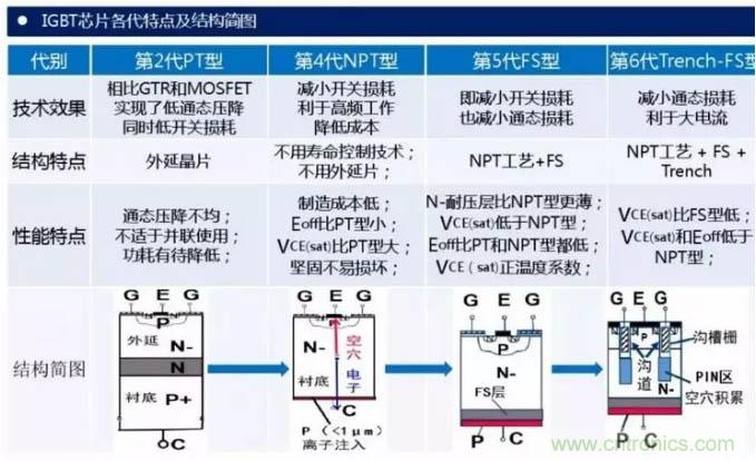 1985年前后美國(guó)GE成功試制工業(yè)樣品(可惜后來(lái)放棄)。自此以后, IGBT主要經(jīng)歷了6代技術(shù)及工藝改進(jìn)。