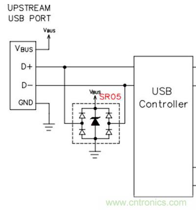 此模塊USB經(jīng)常用來(lái)配置數(shù)據(jù),插拔容易被靜電損壞,本方案可以采用分立器件或者集成器件,但要確保選擇的器件結(jié)電容小于3PF。