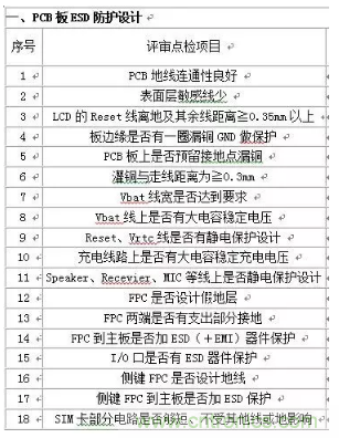 一般電子產(chǎn)品設計時不考慮EMC問題,就會導致EMC測試失敗,以致不能通過相關(guān)法規(guī)的認證。下圖概述了EMC、EMI、ESD評審的要點。