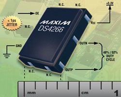DS4266支持LVPECL和LVDS輸出。器件工作在-40°C至+85°C擴(kuò)展級溫度范圍,提供節(jié)省空間的5.0mm x 3.2mm x 1.49mm、10引腳LCCC表貼陶瓷封裝。芯片起價(jià)為$4.50 (10,000片起,美國離岸價(jià))。可提供樣品以加速設(shè)計(jì)進(jìn)程。
