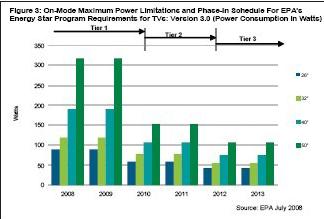 EPA認(rèn)為,這個(gè)3.0版規(guī)則每年可以減少數(shù)百萬(wàn)千瓦時(shí)的能源需求。這些指南將越來(lái)越嚴(yán)格,并將在未來(lái)幾年逐步應(yīng)用于不同類型的電視廠商。一線電視品牌須立即遵守相關(guān)規(guī)定,二線與三線廠商須分別在2010和2012年達(dá)到規(guī)定要求。