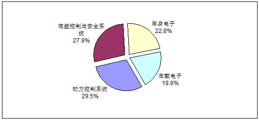 圖2 2008年中國汽車電子市場應用結(jié)構
