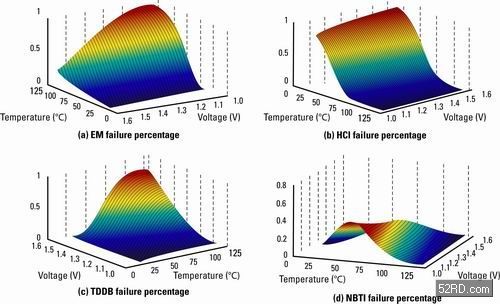 可用信息能夠估算出故障概率,卻無法提供實(shí)際故障數(shù)據(jù),這是實(shí)施可靠性工程的一大挑戰(zhàn)。一般來說,用上幾千小時去測試一個裝置的做法是不切實(shí)際的,所以我們通常無法得到一個元件或系統(tǒng)在實(shí)際壽命中的測試數(shù)據(jù)。新產(chǎn)品的可靠性數(shù)據(jù)往往等于零,然而這并不代表有關(guān)產(chǎn)品永遠(yuǎn)不會出現(xiàn)故障。雖然以更高溫度加快壽命測試或許能提供恰如其分的實(shí)驗(yàn)數(shù)據(jù),不過該實(shí)驗(yàn)前提包括了活化能量恒久不變的假設(shè),而在實(shí)際情況下,它是電壓和溫度的一個函數(shù)(圖1)。這限制了加快的壽命測試在預(yù)測可靠性方面的準(zhǔn)確度。因此,現(xiàn)場故障的監(jiān)察及反饋對提高產(chǎn)品可靠性的預(yù)測能力十分重要。