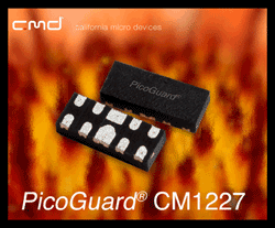 California Micro Devices推出超低電容的ESD器件CM1227,PicoGuard CM1227 ESD器件超低通道輸入電容為0.35pF,適合用于高速數(shù)字消費(fèi)電子應(yīng)用中。該器件可提供4個(gè)通道的±15kV接觸ESD保護(hù),超過了IEC61000-4-2 4級標(biāo)準(zhǔn)。