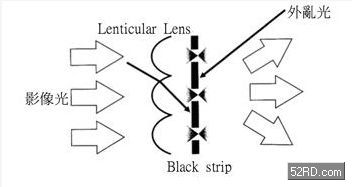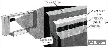 LenticularLens除了可以收斂遮光部開口位置的光線之外,它還會將入射的影像光線擴散到水平方向,此外LenticularLens為了支援高解析度(HD)影像,因此要求非常微細的鏡片間距(LensPitch),因為粗大的鏡片間距可能會導致FresnelLens、LenticularLens與投影影像畫素出現(xiàn)波紋。