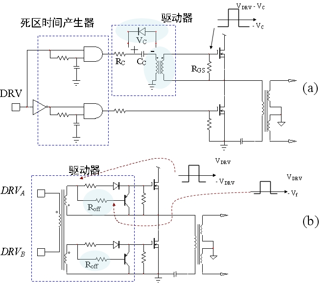 圖2:單驅(qū)動輸入(a)與雙驅(qū)動輸入(b)變壓器驅(qū)動方案電路對比。