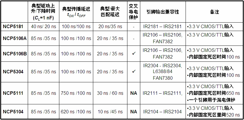 表1:安森美半導(dǎo)體用于高端MOSFET驅(qū)動的硅驅(qū)動器相互參照。