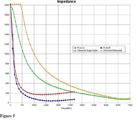 差分探頭具有固有的較低負載,現(xiàn)在的問題是增加到非常高的帶寬差分放大器(這里是7.5GHz)已被解決,這么一個探頭的所有的高頻測量是最好的。WaveLink系列探頭在這些任何已有的高頻探頭中具有最低的負載,提供了測試信號的最低失真。